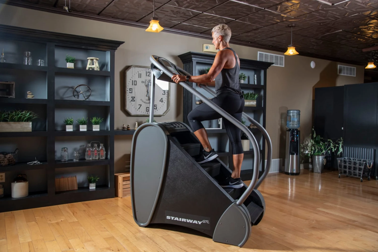 Like the standard Stairway and the Jacobs Ladder cardio machine, the GTL is uniquely space-efficient and versatile compared to other commercial stair climbers. It’s plug-free, so you don’t need to place it near a wall, and the ceiling height requirement is only 8.5 feet. The machine’s narrow 30.5” width also makes it easier to maneuver through doorways, while its initial step-height of 10” makes for no-nonsense stopping and starting.