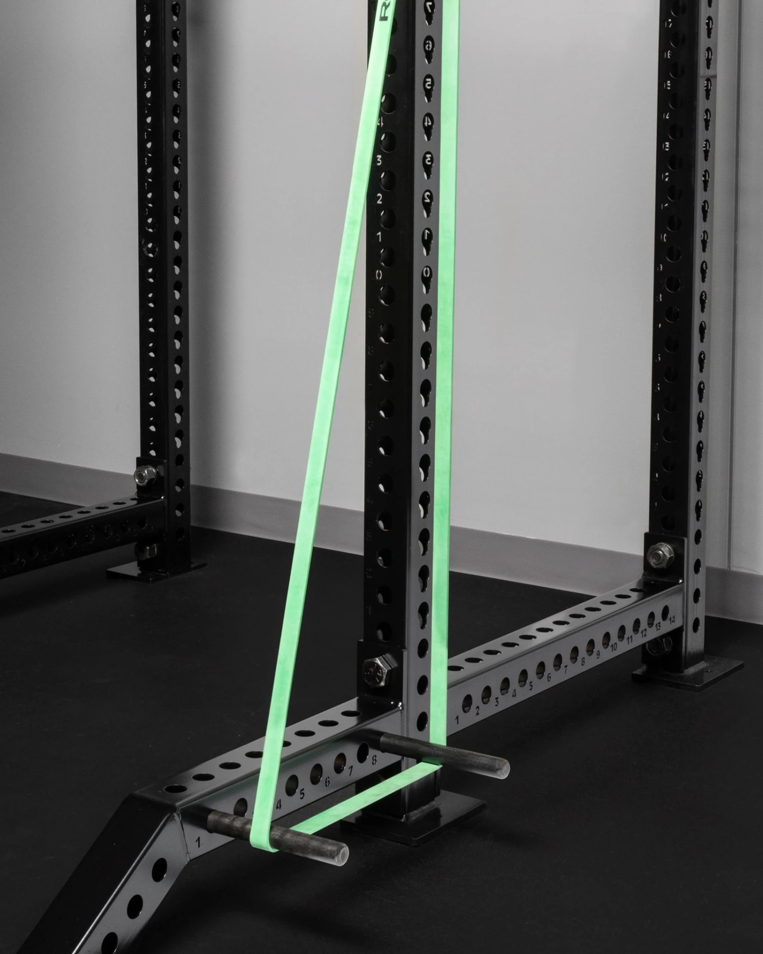 Please Note: If users are doing band work with the rack as an anchor, we highly recommend that the rack is securely fastened to the floor. Floor mounting hardware is not included. For Monster Lite Rack owners, please see our Monster Lite Half Rack Foot