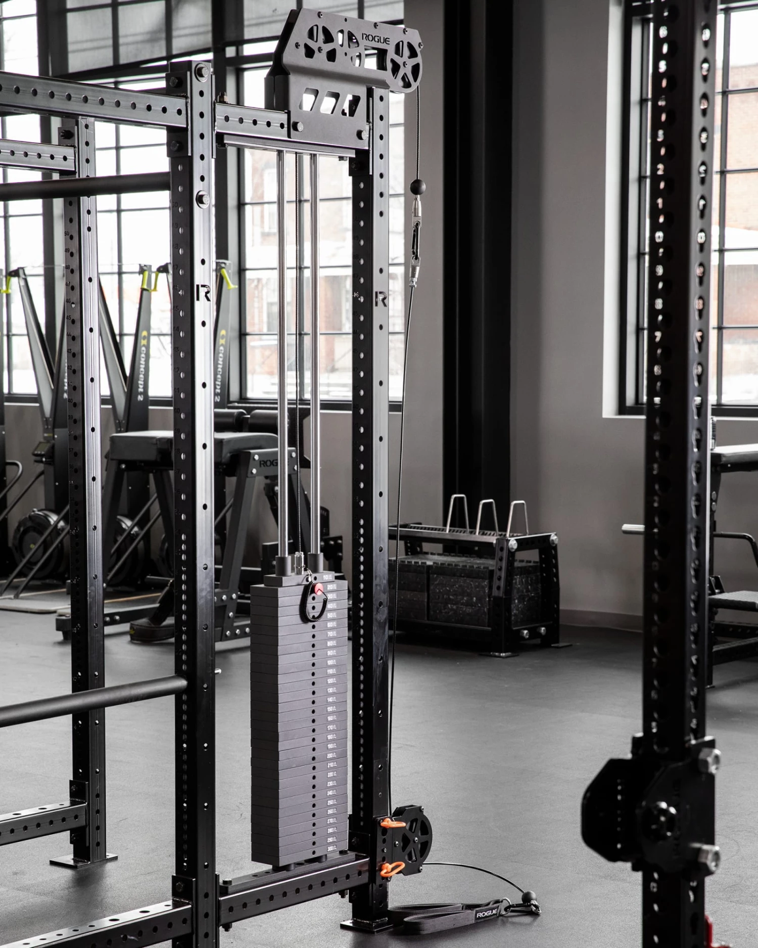 This unit can be used with with Band, Plate Load, and Weight Stack styles of the Slinger, as well as 90”, 100”, and 108” ML power racks. Once assembled, it can be mounted to an upright using the included pair of removable detent pins, or permanently installed with bolts (not included). Users can then easily move the Solo Pulley Attachment vertically along the upright depending on their own height and which exercise they wish to perform.