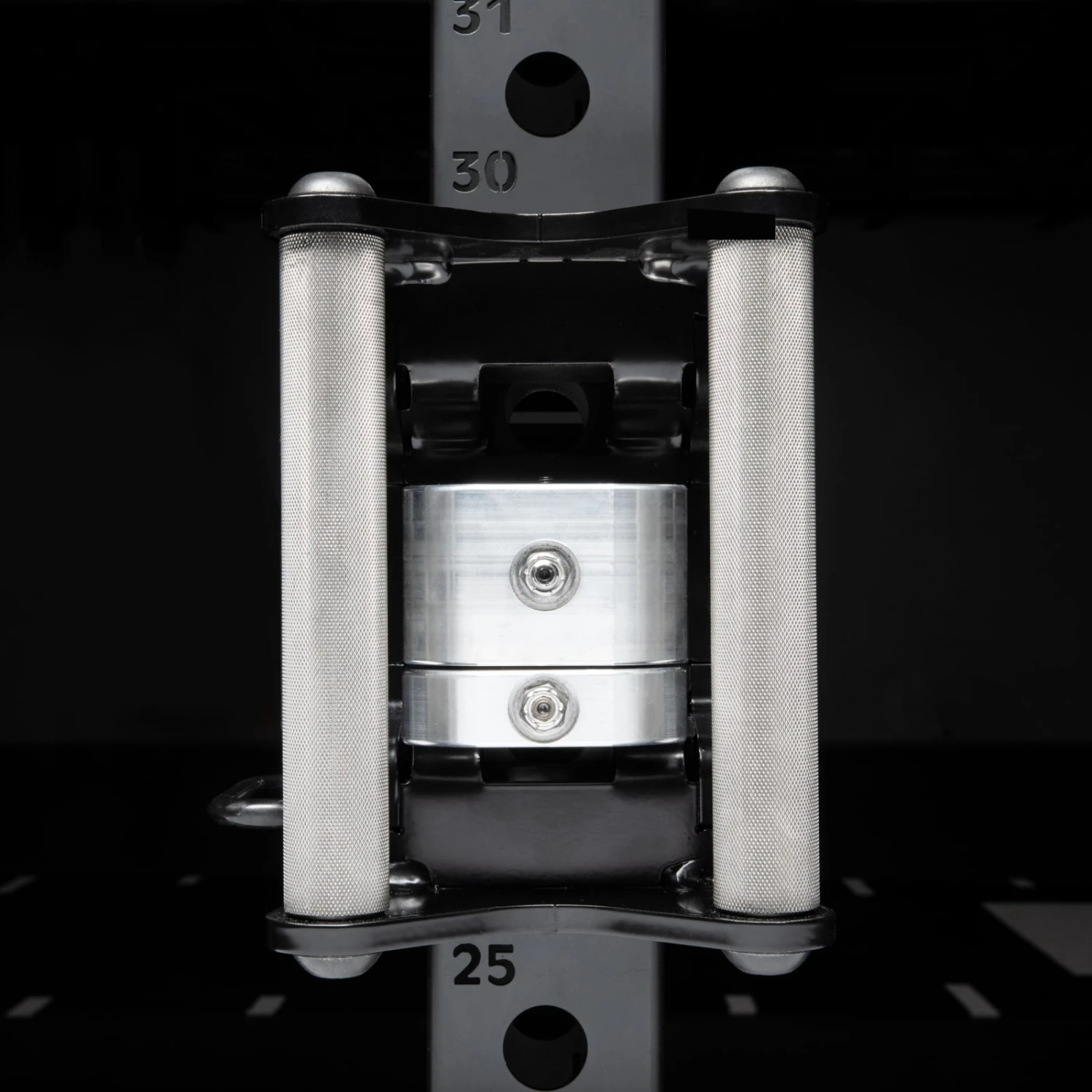 Customers can choose either a set of standard Neutral Grip Handles, or at added cost, can upgrade to our AH-1 Articulating Handles. Due to their unique hinging / swiveled design, the barbell-style AH-1 handles (Knurled Stainless Steel) enable a more natural travel path for performing deadlifts, bent over rows, overhead press, bench press, and other traditional exercises.