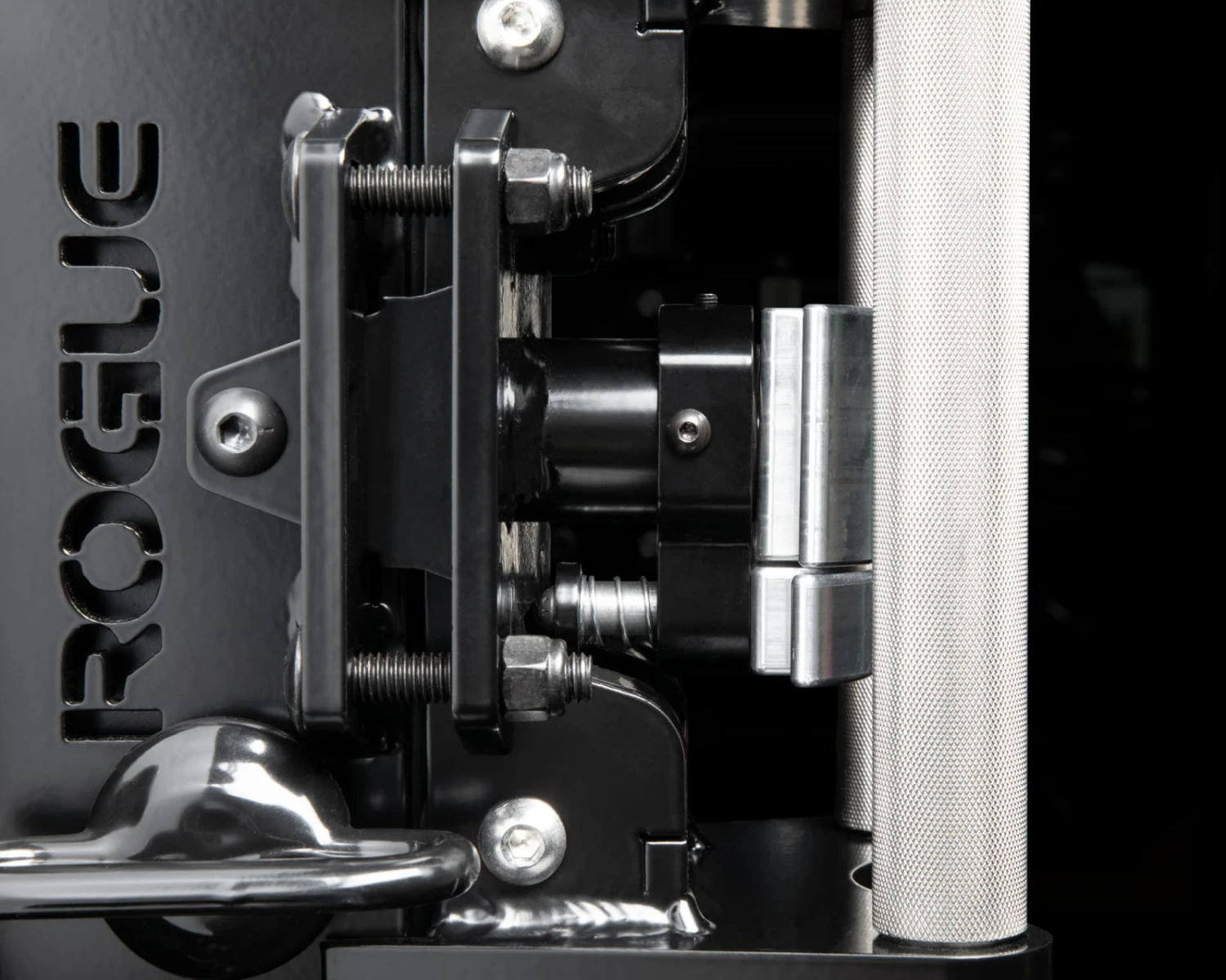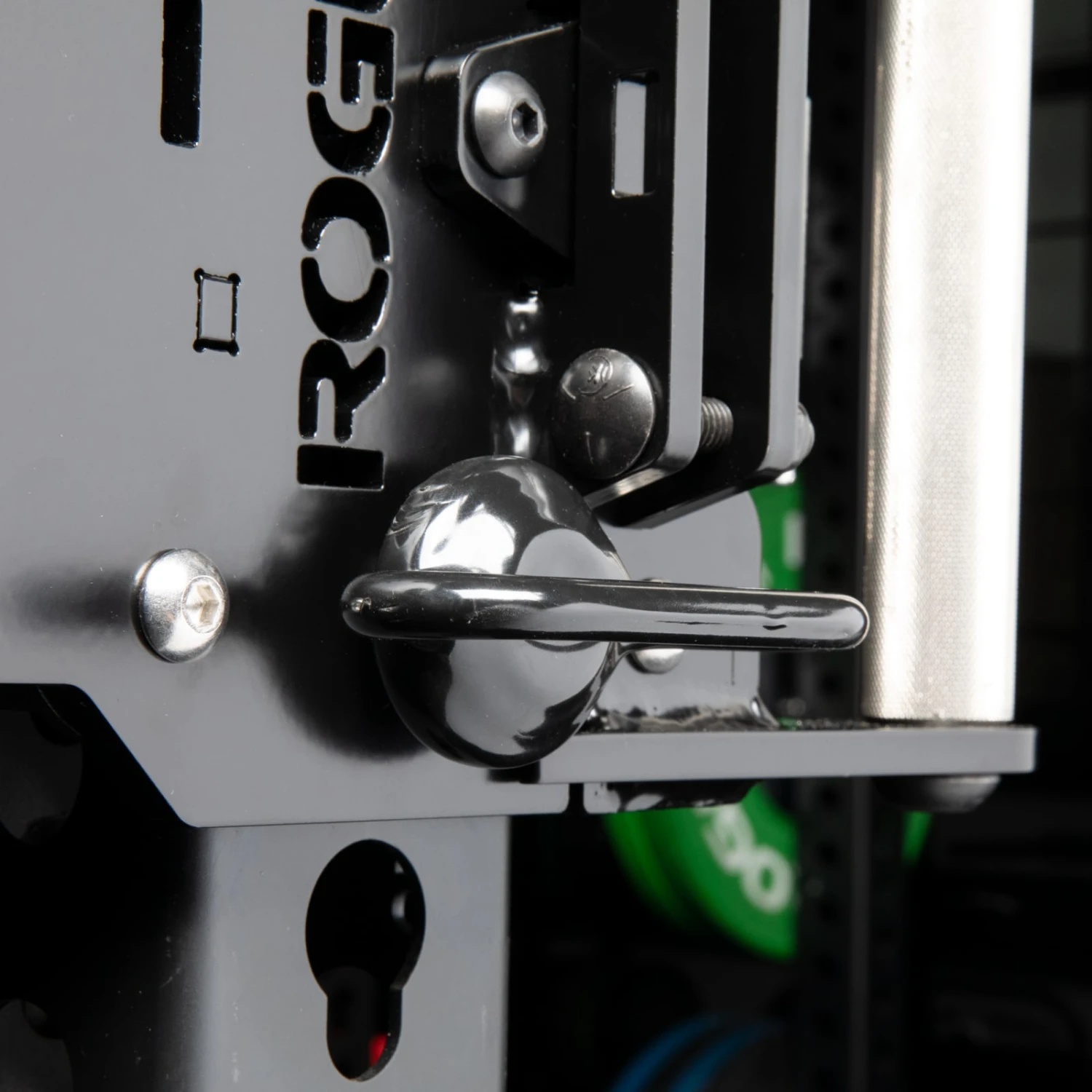 Compatible with any Rogue Monster Series rig or rack (a Monster Lite version version is sold separately), the LT-1 50 CAL Trolley and Lever Arm Kit gives athletes the ability to quickly reconfigure a unit for a wide range of different movements, without the need of a wrench or other tools. We’ve put years of research and refinement into this product, looking to create an optimal mechanism that can attach to an existing 3×3” upright and enable easy north/south adjustments with lock-in stability. Version 2.0 improves upon the original design with a new look and several key upgrades, including numbered uprights, a more robust tensioning system, and easier installation. We’ve also added a secondary locking trigger for improved safety, and a key for locking the lever arms in the “down” position—turning them into functional uprights.
