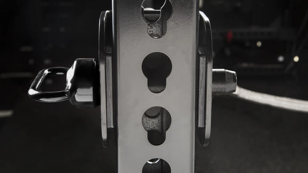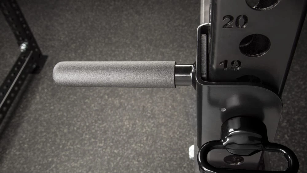 This version of the Rogue Squat Handles is compatible exclusively with our Monster Series rigs and racks (a Monster Lite version is also available). Adjustable to any height using the included detent pins, these 6″ (handle) long, 1.25″ (handle) diameter handles offer athletes greater stability on safety squats, reducing stress on the shoulders and triceps while maintaining a straight spine. By keeping your hands in front of you, it also becomes easier to sit back through the movement and shift the focus to the quads, hamstrings, and glutes.