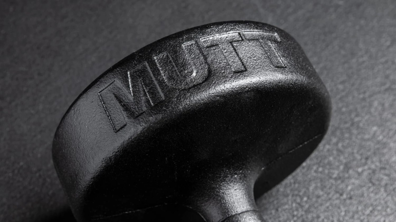 MUTT Dumbbells are sold in pairs and available in the following weight increments: 10LB, 20LB, 30LB, 40LB, and 50LB. All increments include a black powder coat finish with debossed MUTT branding on one head and the weight indication on the other. A specially designed flat edge is built into each head to help assist with grip positioning and prevent rollaway.