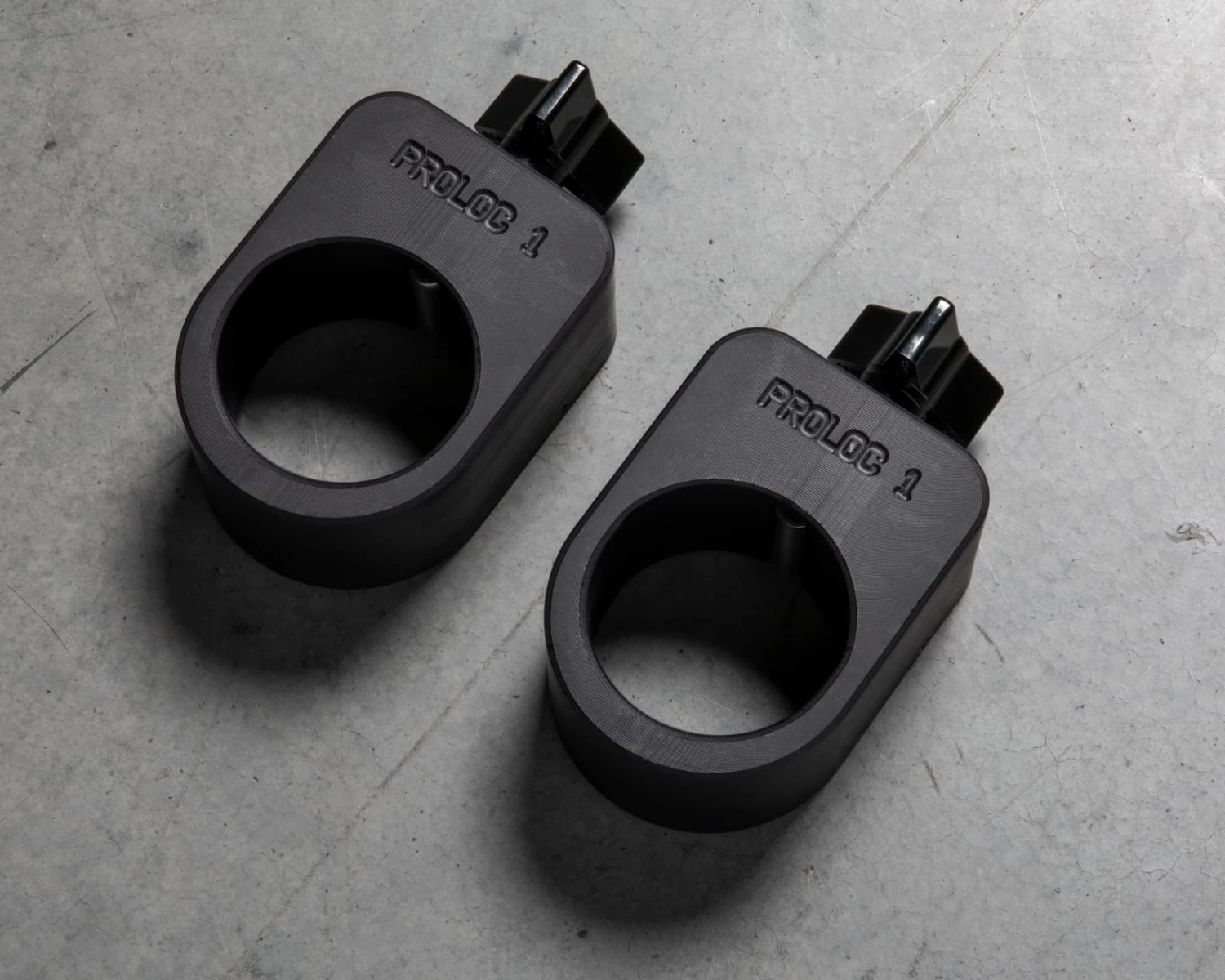 Each collar features easy on / easy off knobs that work as smoothly as most spring clips, while offering a more consistent, locked-on hold during even the most intense powerlifting routines. Nearly universal in design, they can be used with almost any standard Olympic or Powerlifting bars, as well as the Rogue Camber Bar, Rogue Safety Squat Bar, Multi Grip Bars, and Rogue Farmers Walk Handles, among others. For bars with a smaller diameter of 1.9”, the PROLOC™ Strongman Collars is an alternative option.