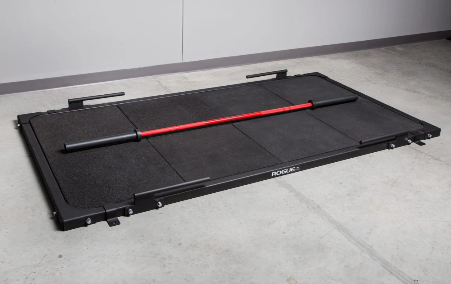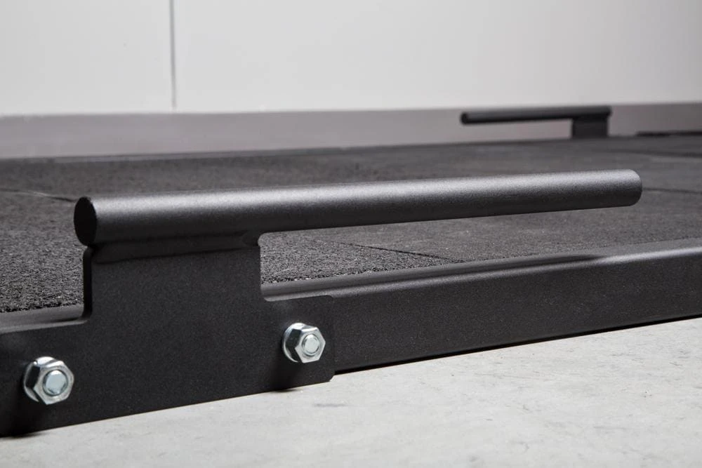 Speed work is an essential component of any strength program, and a dependable platform can build the literal foundation for it. The 8′ x 4′ Rogue Deadlift Platform features a 2×2″ 11-Gauge Steel frame, and ships standard with (2) floor plates. This design allows for safe band use outside of a power rack without having to bolt the platform to the floor (our standard Oly Platform, by comparison, requires bolting to the ground for band work).