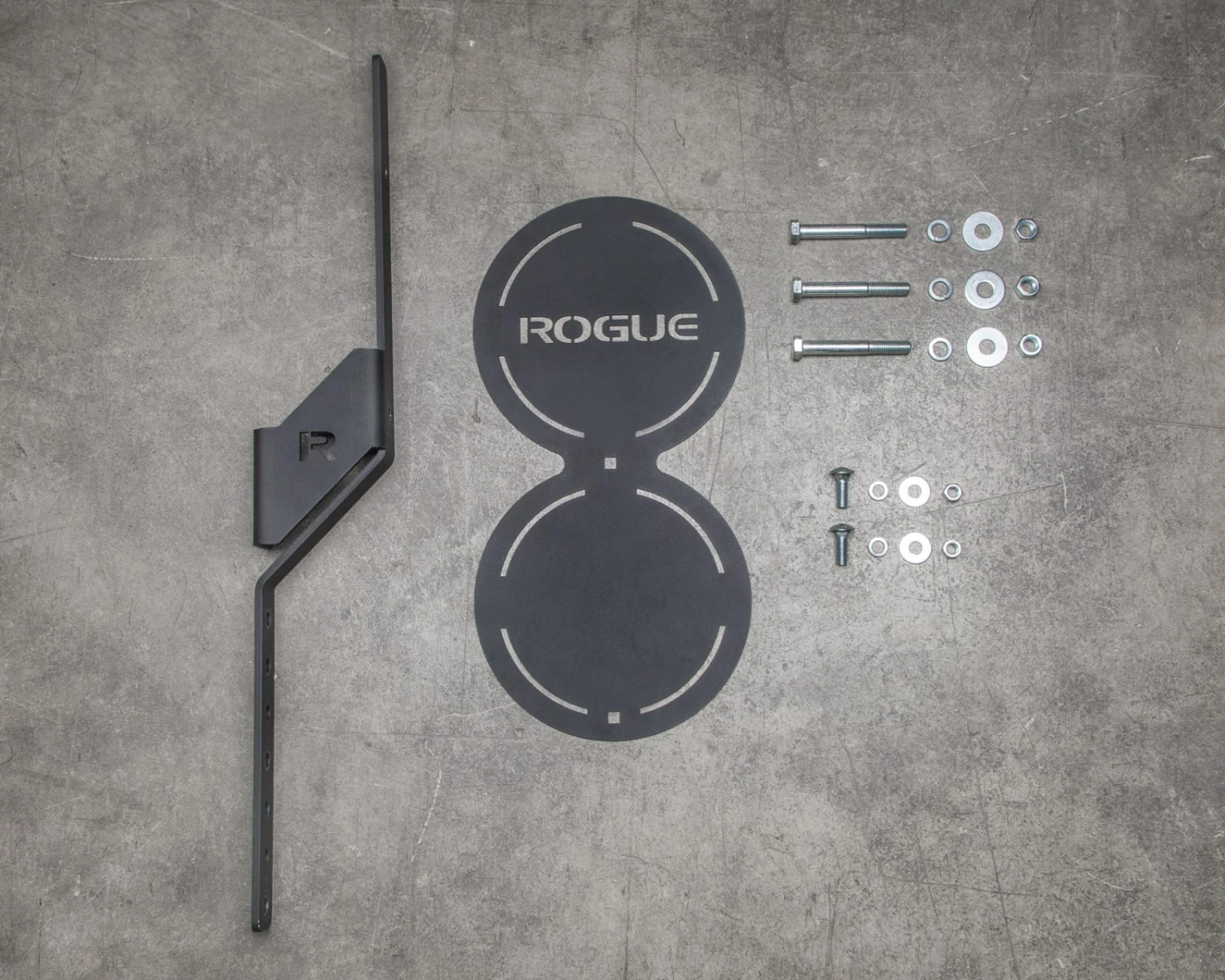 The two 0.125″ thick steel target plates each measure 12″ (Per Target) in diameter, and include laser-cut Rogue branding. The mounting arm is made from 0.3125″ Laser-cut Steel, and features a formed gusset for greater rigidity. There are 7 mounting holes, 2″ on center, with the top and bottom holes measuring 12″ on center. All necessary hardware is included: 0.625″ for mounting the arm to the your rig and 0.5″ for connecting the target plates to the arm. Once installed, the faces of the Double Wall Ball Target extend approximately 5.75″ off the face of the upright.