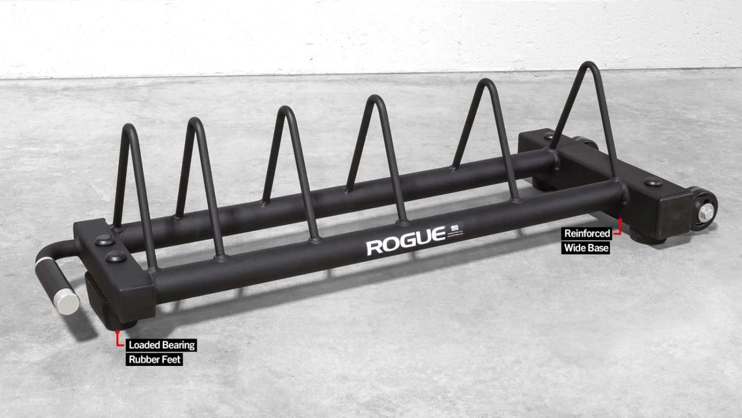The fully redesigned Rogue Horizontal Plate Rack offers a single, versatile storage solution for any and all types of bumpers—including Hi Temps, HG Bumpers, Competition Plates, and Steel Plates. Utilizing new manufacturing capabilities, Version 2.0 features a sleeker look with a wider back end for greater stability during transport and a set of load-bearing rubber feet to protect your gym’s flooring.