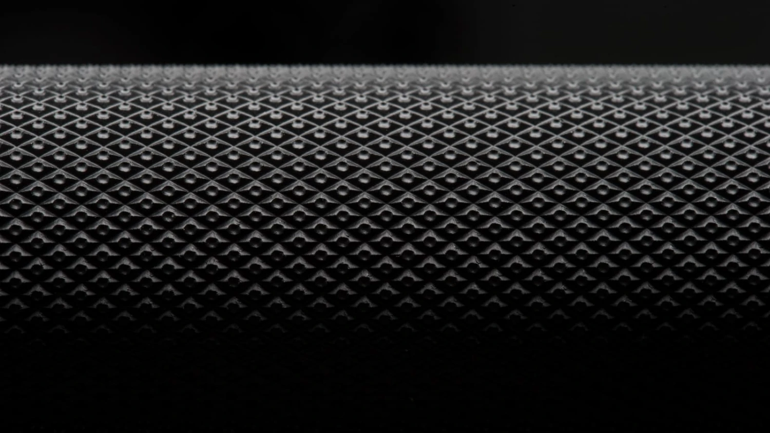 The Ohio Deadlift Bar’s sleeves feature a quality snap ring construction—far superior to the cheaply produced bolt-and-pin style sleeves of some other brands. The powerlifting knurl marks on this bar are a bit deeper / more aggressive than our Ohio Power Bar, but machined in the same pattern. There is no center knurl.