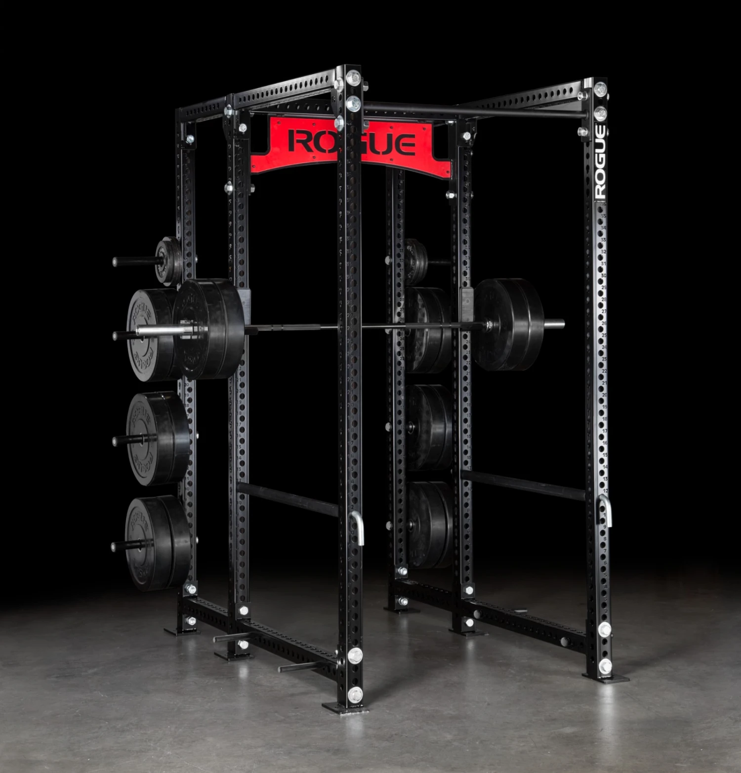Rogue designed the fully customizable power racks of the Monster Series to meet the high demands of the top professional, collegiate, and high school athletic facilities in the world. We used bigger, 3×3″ 11-gauge steel tubing, over-sized 1″ hardware, and a bolt-together design for easier portability and affordable shipping. With Version 2.0, we’ve also rolled out a number of new features, including a wide spectrum of custom color options, laser-cut pin position numbers on the uprights and bottom crossmembers, and a keyhole pattern on the sides of each upright—creating compatibility with more add-ons and attachments.