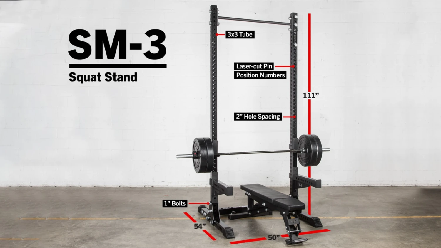 The SM-3 is tallest of our Monster Series squat stands, and comes with your choice of either a 43″ Single Skinny or Fat/Skinny Pull-Up Bar. The rack is manufactured in Columbus, OH, and ships with all required hardware and a set of Monster J-cups with protective UHMW plastic inserts.