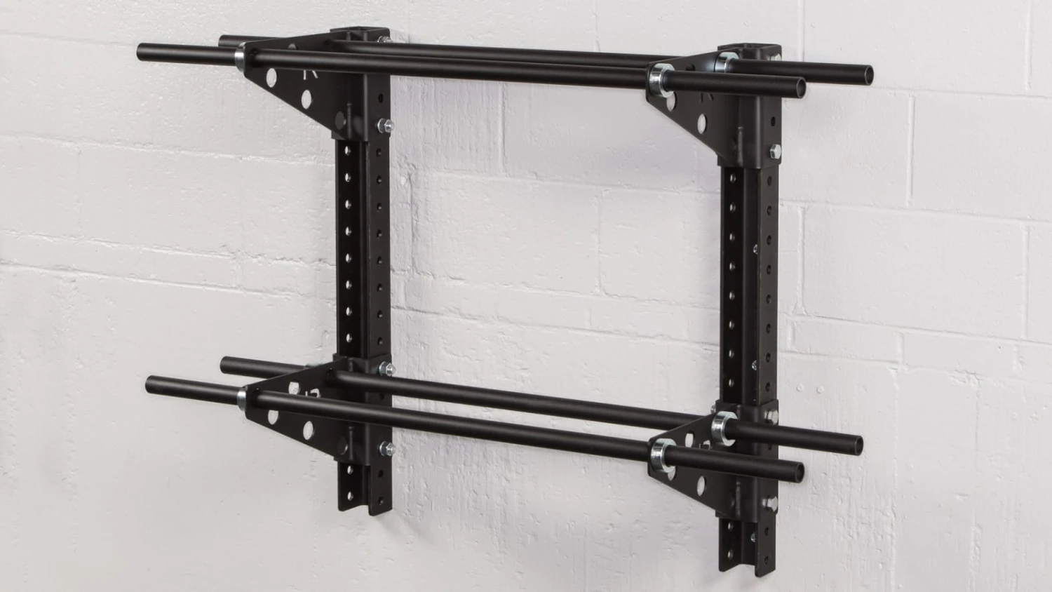 Set-Up: Simply space and install two Rogue Strips® at your desired shelf length, then connect each bracket to The Strip® using the provided 0.625″ hardware. To complete the shelves, customers can opt to have a pair of 52″ long pipes included in their order, or—if you prefer a custom-length—you can purchase any length of 1″ Schedule 40 pipe at your local hardware store and run them through the brackets.