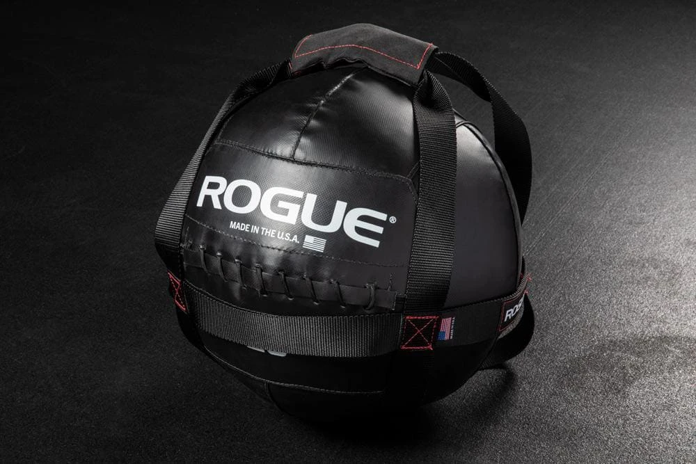 All Ballistas are manufactured at the Rogue factory in Columbus, Ohio, and feature 1.5″ wide black nylon webbing with a 500D cordura handle. The grip-friendly handle portion wraps securely around the webbing via a velcro closure, and measures 6″ wide once it’s in place. Reinforced x-box stitching further ensures the ball remains stable and secured inside the harness, even during high intensity movements. A Rogue label and Made in the USA are included on the center strap.